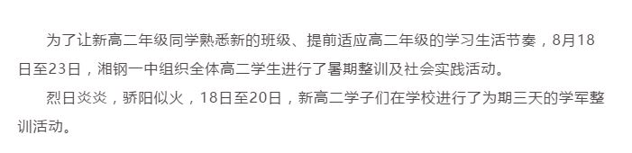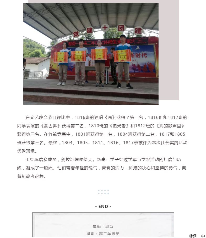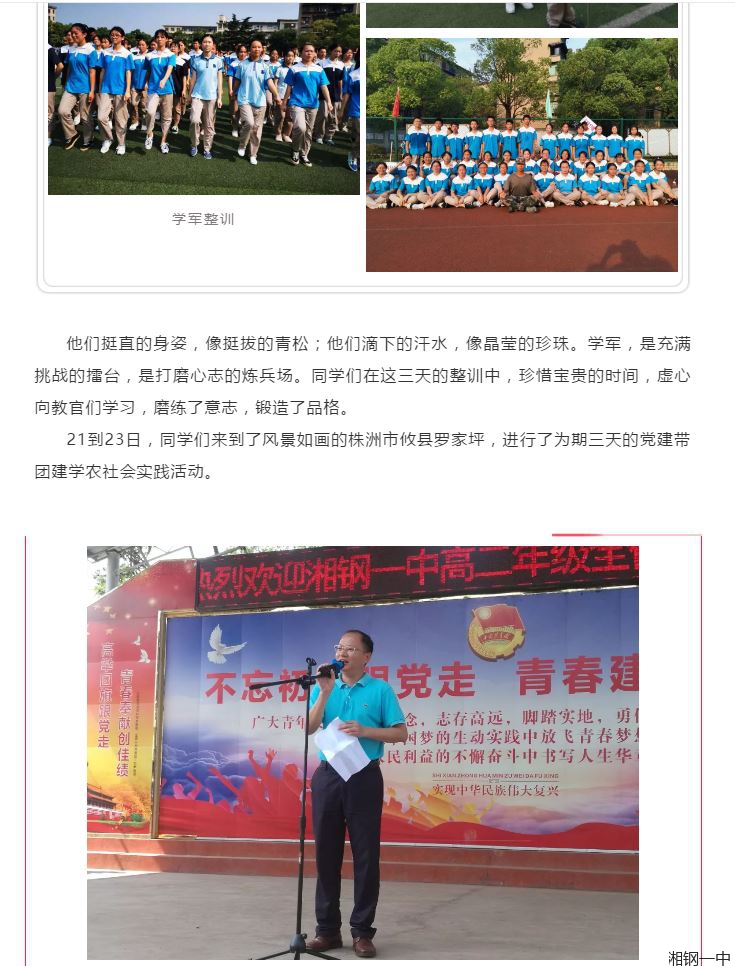 湘钢一中高二年级暑期社会实践及整训活动纪实