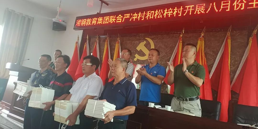 严冲村委会会议室里,响起一阵又一阵掌声。湘钢一中教育集团党委书记卢学农、十二中校区党总支书记向文华代表集团党委给严冲村与松梓村150多名党员同志捐赠《习近平新时代中国特色社会主义思想学习纲要》。两个村的支部书记代表村两委成员对湘钢一中教育集团给予村部的帮助及多次入户慰问帮扶对象表达了衷心的感谢之情。