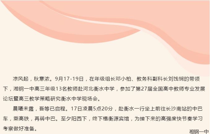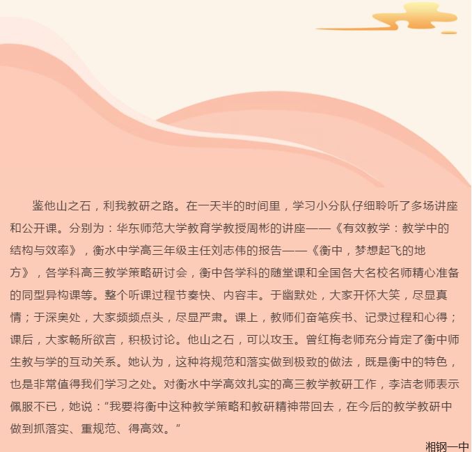 领略名校风采,收获教研硕果 ——记湘钢一中高三年级学习小分队赴衡水中学学习