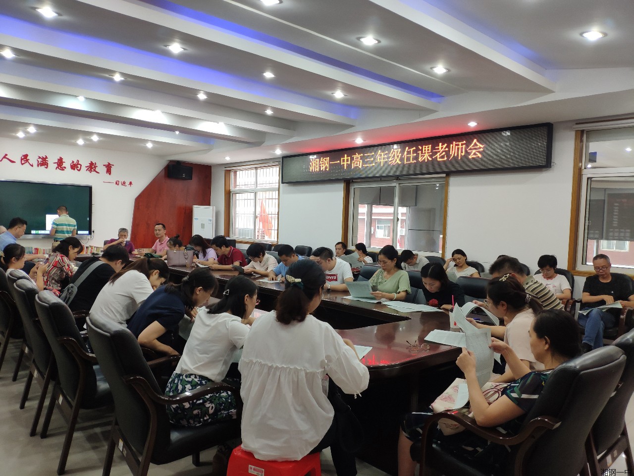 金秋桂花香满园,高考备战鼙鼓响。刚结束两次大联考,9月25日下午,湘钢一中高三年级在南楼会议室召开全体任课教师会。本次会议旨在总结进入高三以来的各项工作,分析两次联考成绩,为下阶段的教学工作做精准规划。湘钢一中教学副校长刘洁冰、德育副校长王锦兵、督导室主任文继军、教务科科长宋锦前、高三年级组组长邓小柏在会上发表重要讲话。会议由高三年级组副组长王学军主持。