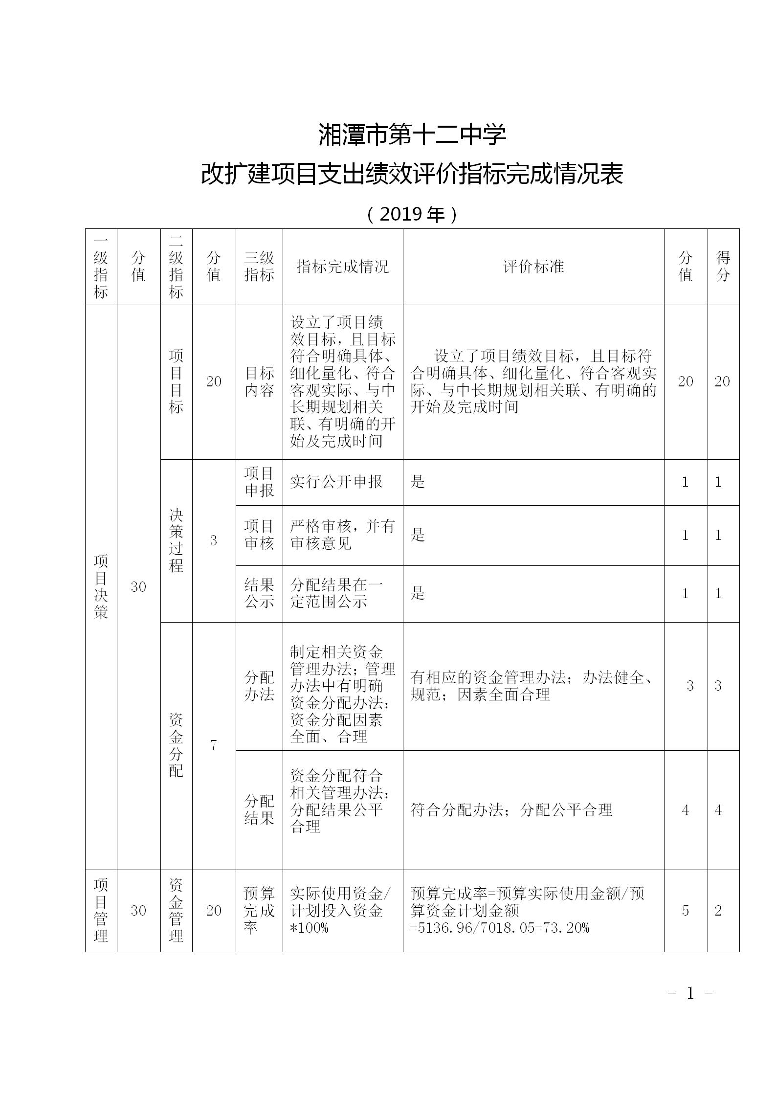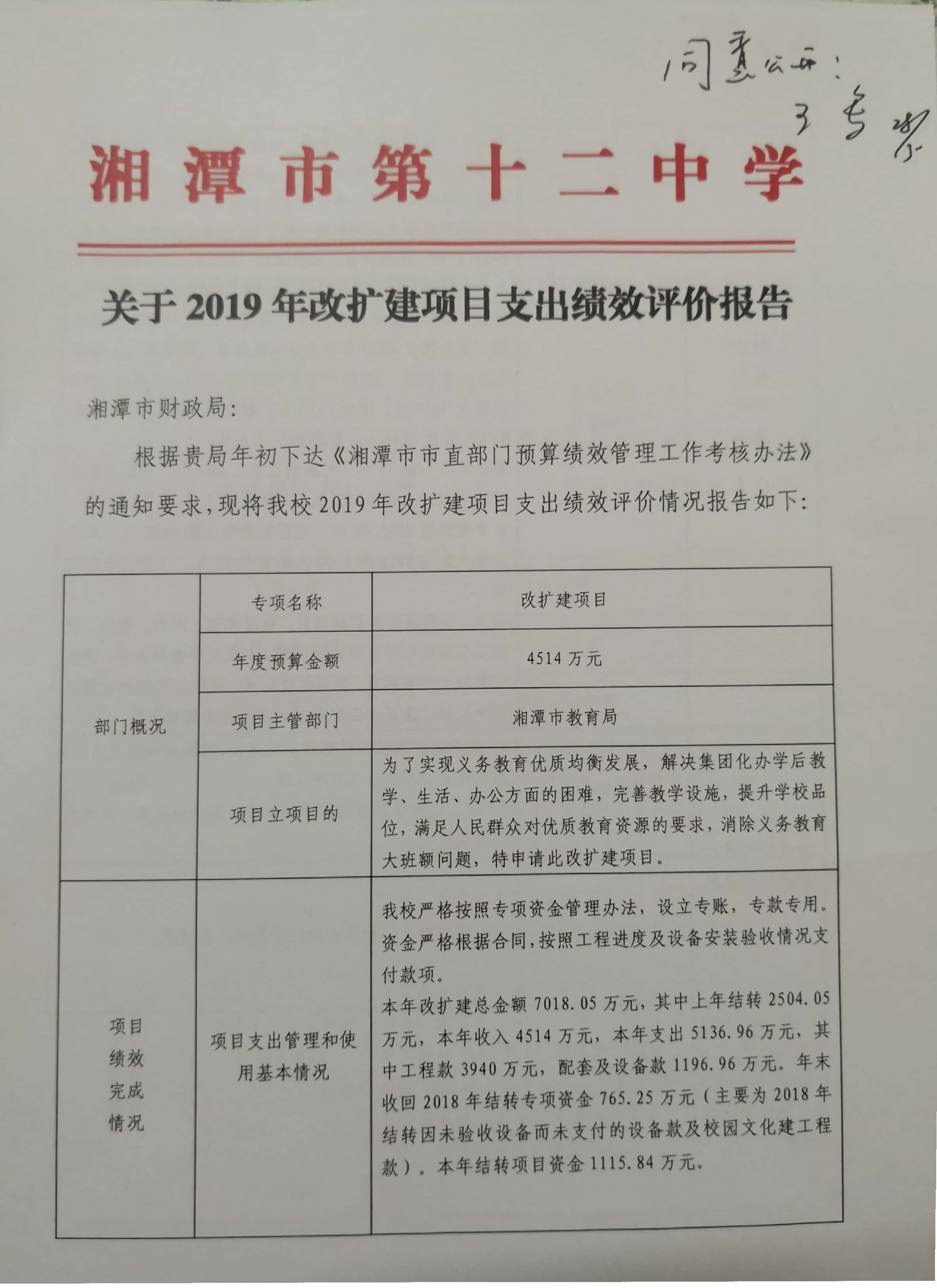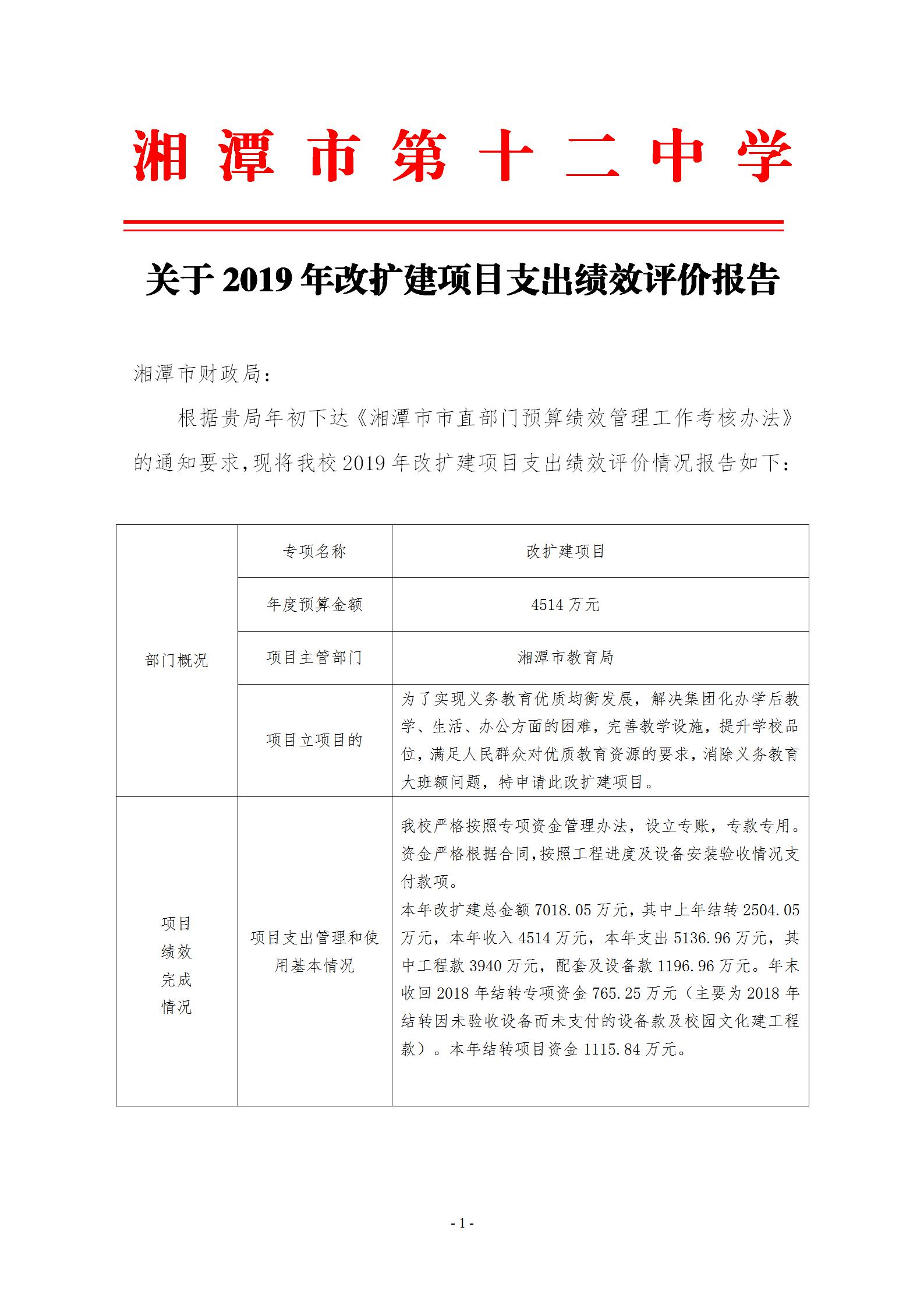 湘潭市第十二中学2019年项目绩效自评报告