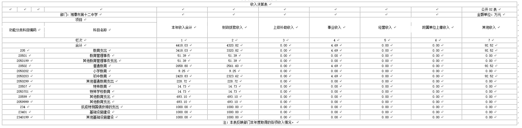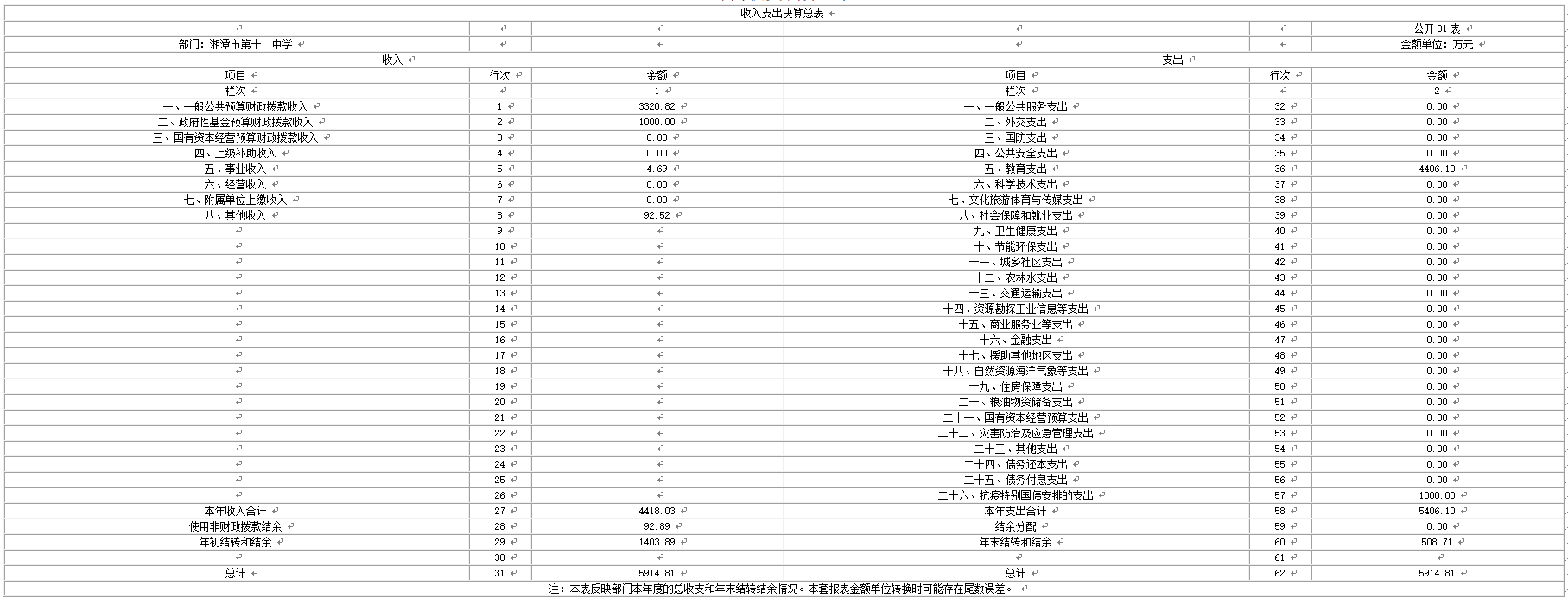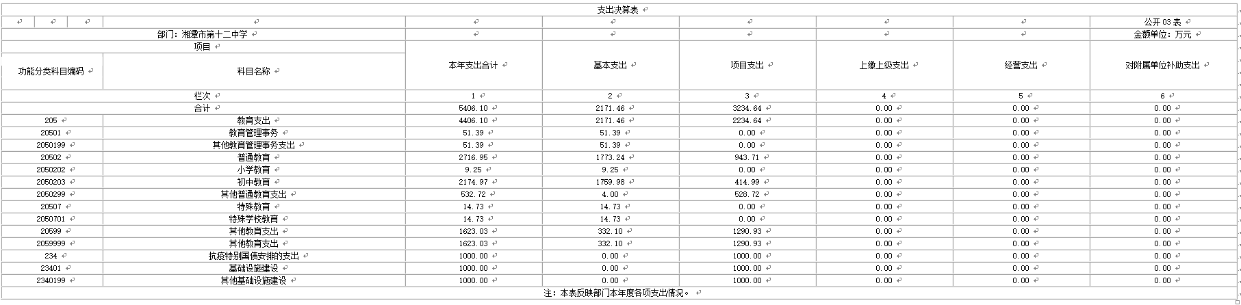 湘潭市第十二中学2020年部门决算汇总公开单位构成包括:湘潭市第十二中学2020年部门决算为湘潭市第十二中学单位本级。