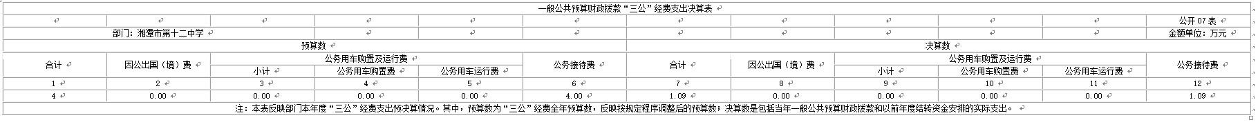 湘潭市第十二中学2020年度机关运行经费支出0.00万元,比年初预算数减少105.78万元,下降100.00%。主要原因是:湘潭市第十二中学为财政补助事业单位,没有机关运行经费。