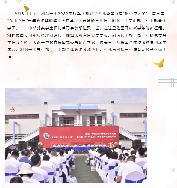 踔厉奋发 弦歌不辍——湘钢一中隆重举行2022年秋季开学典礼