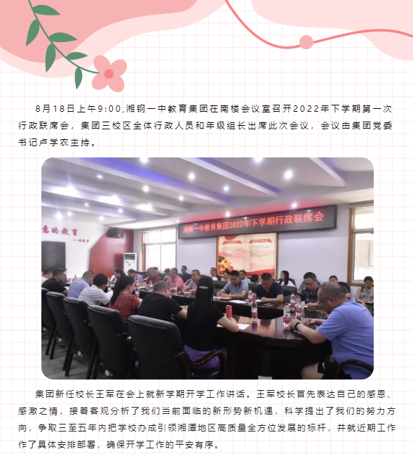 新起点,新机遇,新发展,新辉煌!——湘钢一中教育集团召开2022年下学期行政联席会