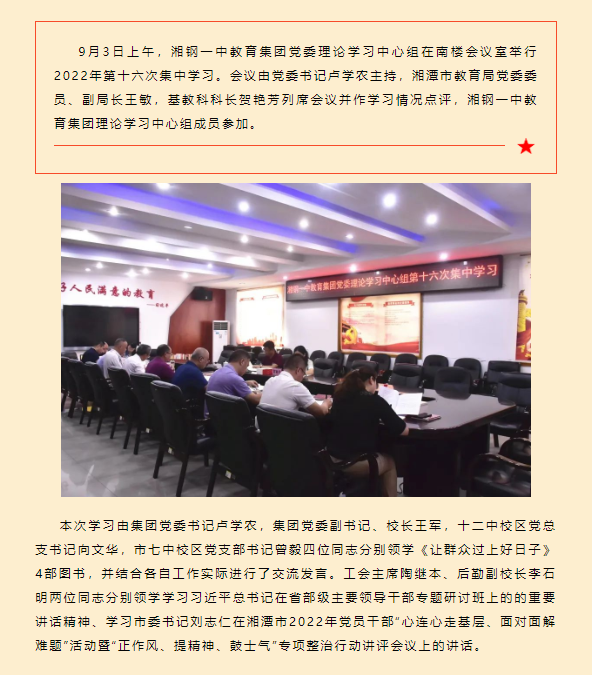 筑牢政治忠诚 实干担当作为——湘钢一中教育集团党委理论学习中心组举行2022年第十六次集中学习