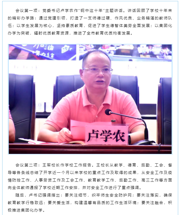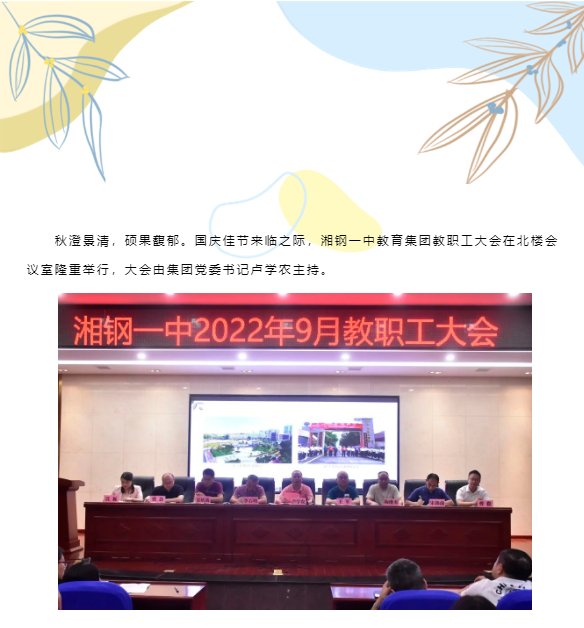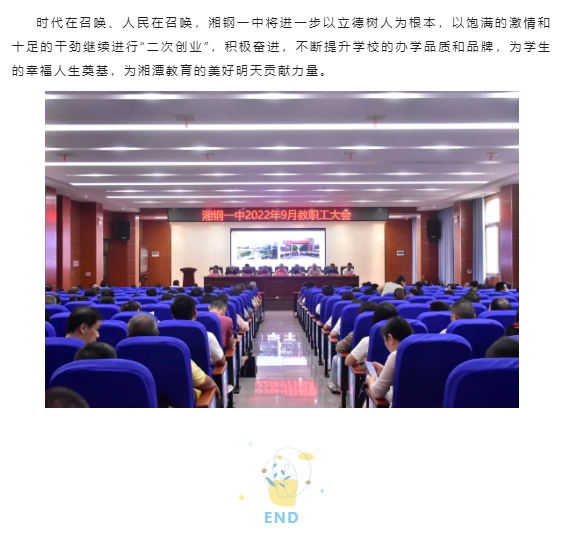 只争朝夕谋创新,砥砺奋进写新篇——湘钢一中召开2022年9月教职工大会