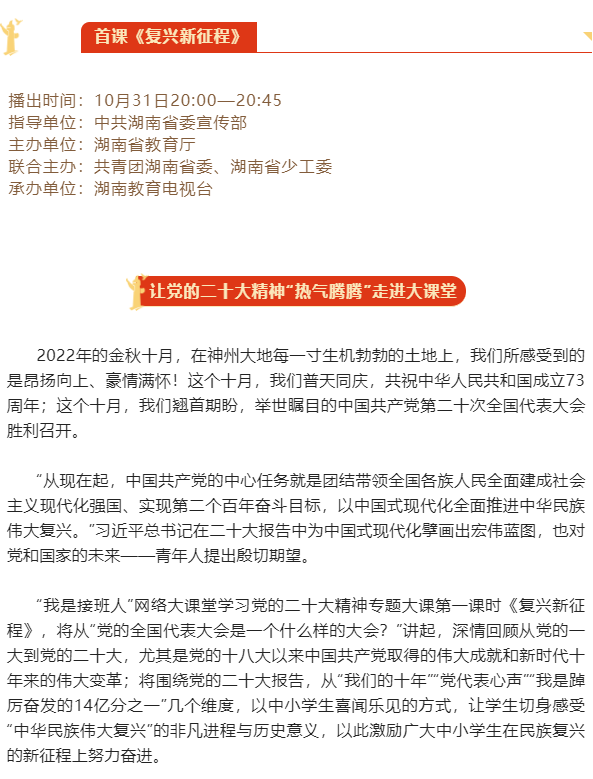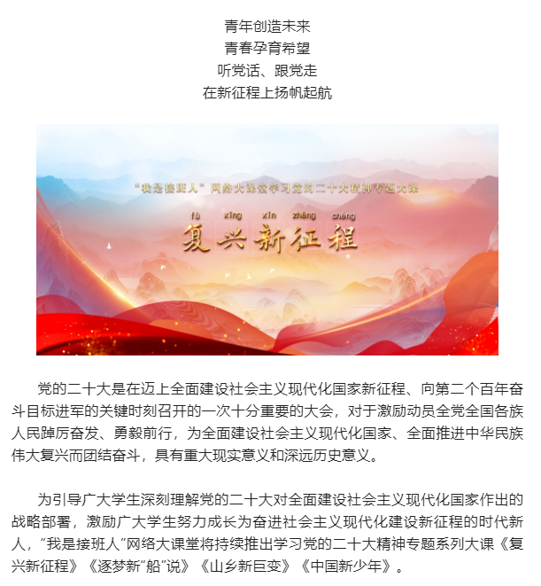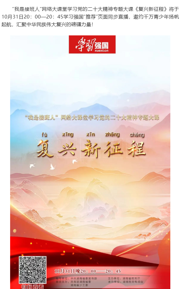 “我是接班人”学习党的二十大精神专题大课《复兴新征程》扬帆起航