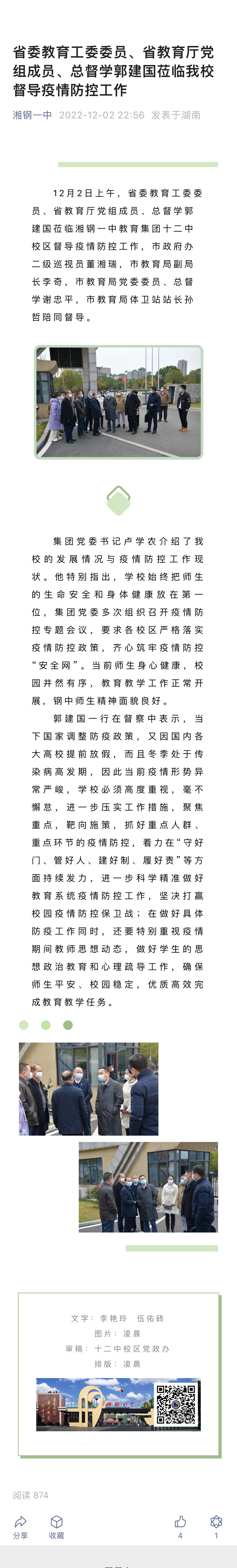 省委教育工委委员、省教育厅党组成员、总督学郭建国莅临我校督导疫情防控工作