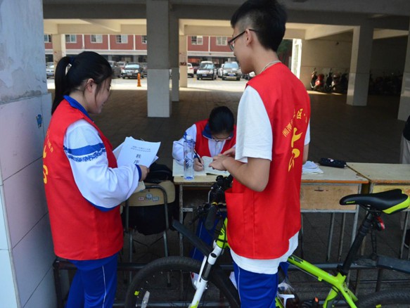 文体部的成员在场内流动性较强,成员大部分分布在流动岗位和通讯岗位上,一小部分负责祝福墙的管理。通讯人员配备自行车,校两会每个服务站点和工作岗位之间的讯息交流几乎全靠这些同学。部长G1614杨轩身为通讯人员之一,在结束工作后笑说:“看着拉风,下了单车后腿都是软的。”