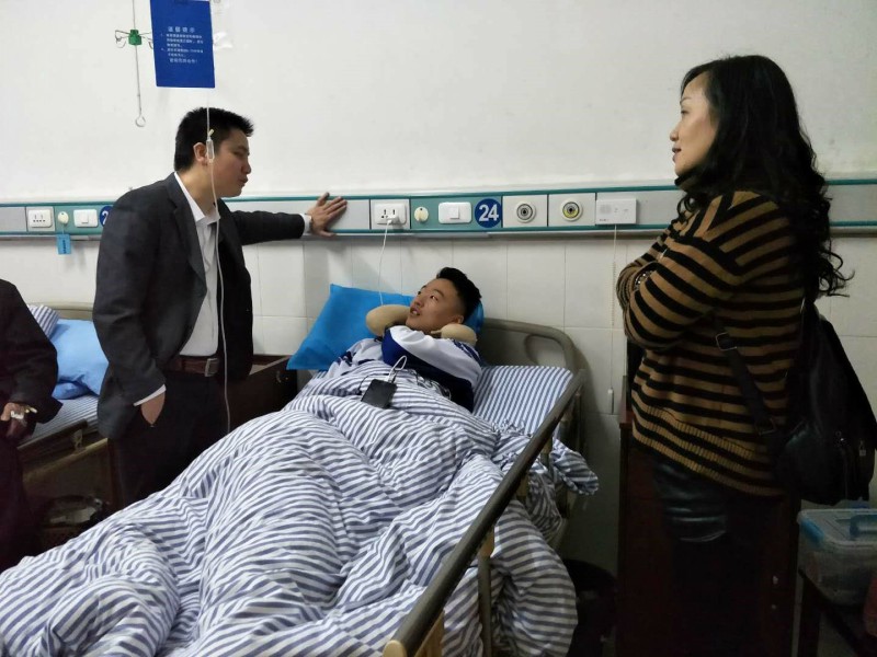 日常生活之中也出现过有惊无险的小插曲:高一新生王泓力同学由于水土不服和体质问题,出现过敏风疹,同时还伴有急性胃溃疡,班主任郑连亨老师知道后,立即调了自己的全部课程,陪同检查并办理了住院手续。由于家长不在身边,王泓力住院期间都是热心的“1704家委会”的学生家长们自发组织安排陪护和照顾。为了王泓力能尽快康复,爱心家长们轮流排班,变着花样做营养餐,王泓力在满满的爱中恢复了健康。