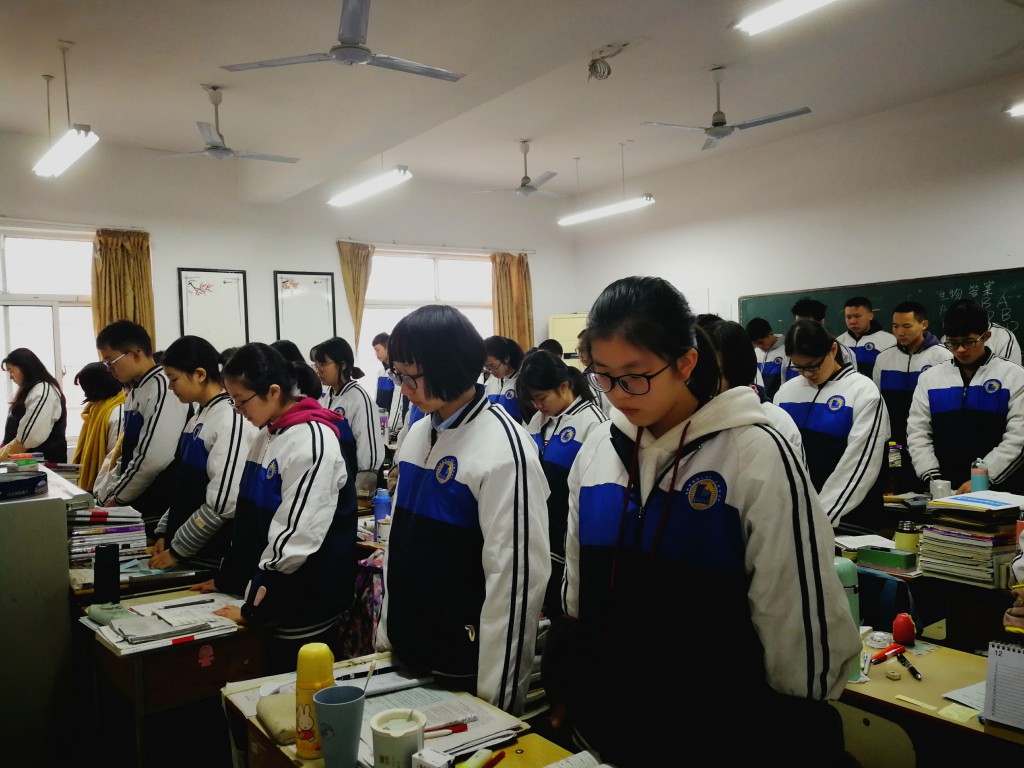 今天,我们在校园内举行默哀仪式,缅怀南京大屠杀的无辜死难者,缅怀所有惨遭日本侵略者杀戮的死难同胞,缅怀为中国人民抗日战争胜利献出生命的革命先烈和民族英雄,宣示中国人民牢记历史,不忘过去,珍爱和平,开创未来的坚定立场。