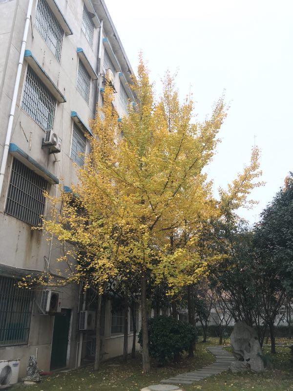 走进小树林,微风骤起,叶儿便纷纷下落。在这似电影般的情节中,于是我终于见到了其中的主角配角——我看见霸占一席花坛的金黄耀眼的银杏树,还有在它一米开外还有一棵在树堆中不知名的小树。