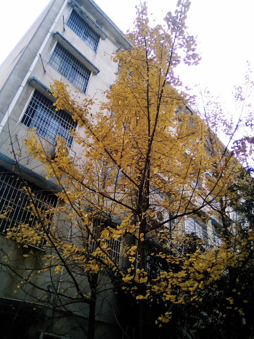 我走近那棵星星零零余着几片叶子的小树,恰巧,微风又再次扑面袭来。银杏满天飞舞,然而枯叶却犹存。
