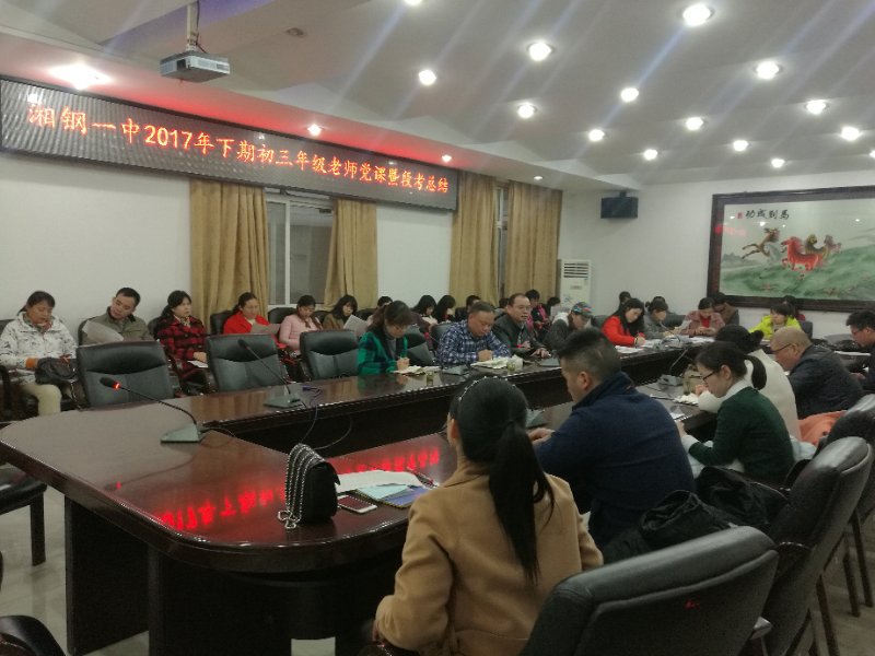 会上,陶主席强调,作为湘钢一中教育集团统招和接受新高考检验的第一届学生培育者,我们全体初三教师倍感光荣使命之鞭策,深感与时俱进师生共长之迫切,十九大报告关于治党、强国、重教、人与社会和谐发展的辩证联系论述,深刻激励着每一个党员教师。与会的全体教师热血沸腾激情澎拜,坚定将自觉运用习近平新时代中国特色社会主义思想武装头脑、指导实践、推动工作,全面贯彻党的教育方针,把习近平新时代中国特色社会主义思想转化为优先发展教育事业的生动实践。“三尺讲台系国运,一生秉烛铸民魂”,不忘初心牢记使命,谨记校训传承优秀,落实立德树人根本任务,奠基学生终身健康幸福成长,奋力做好学生成长的引路人。