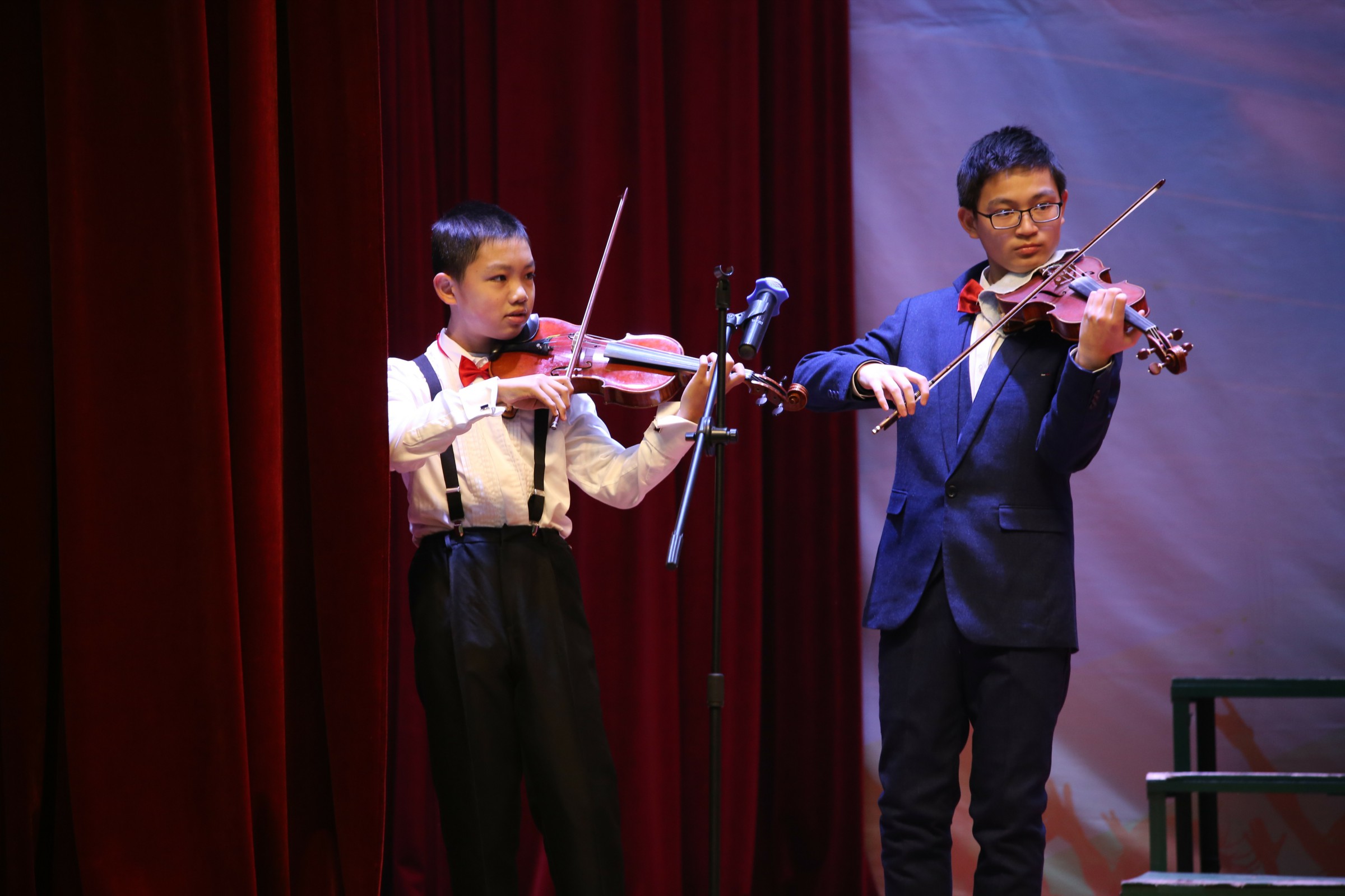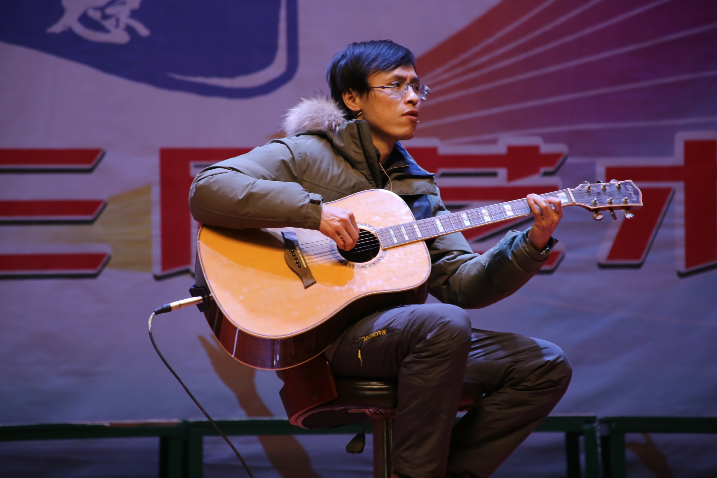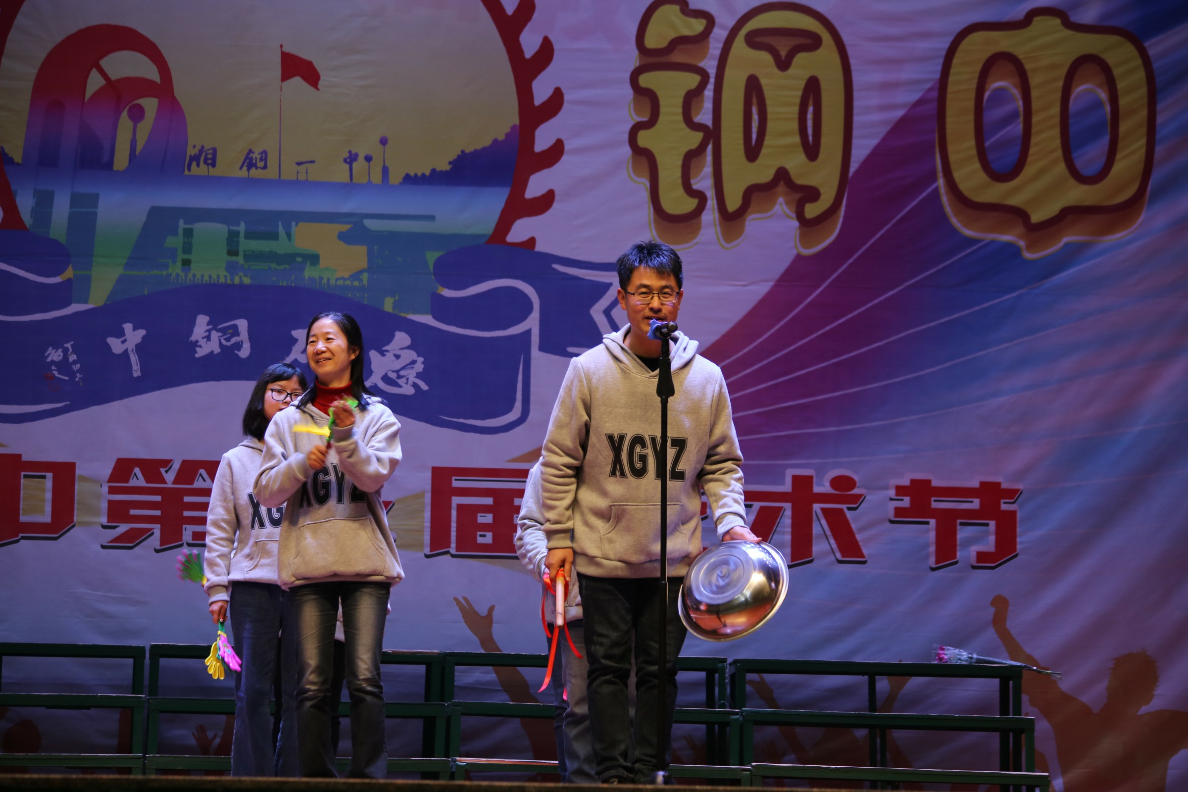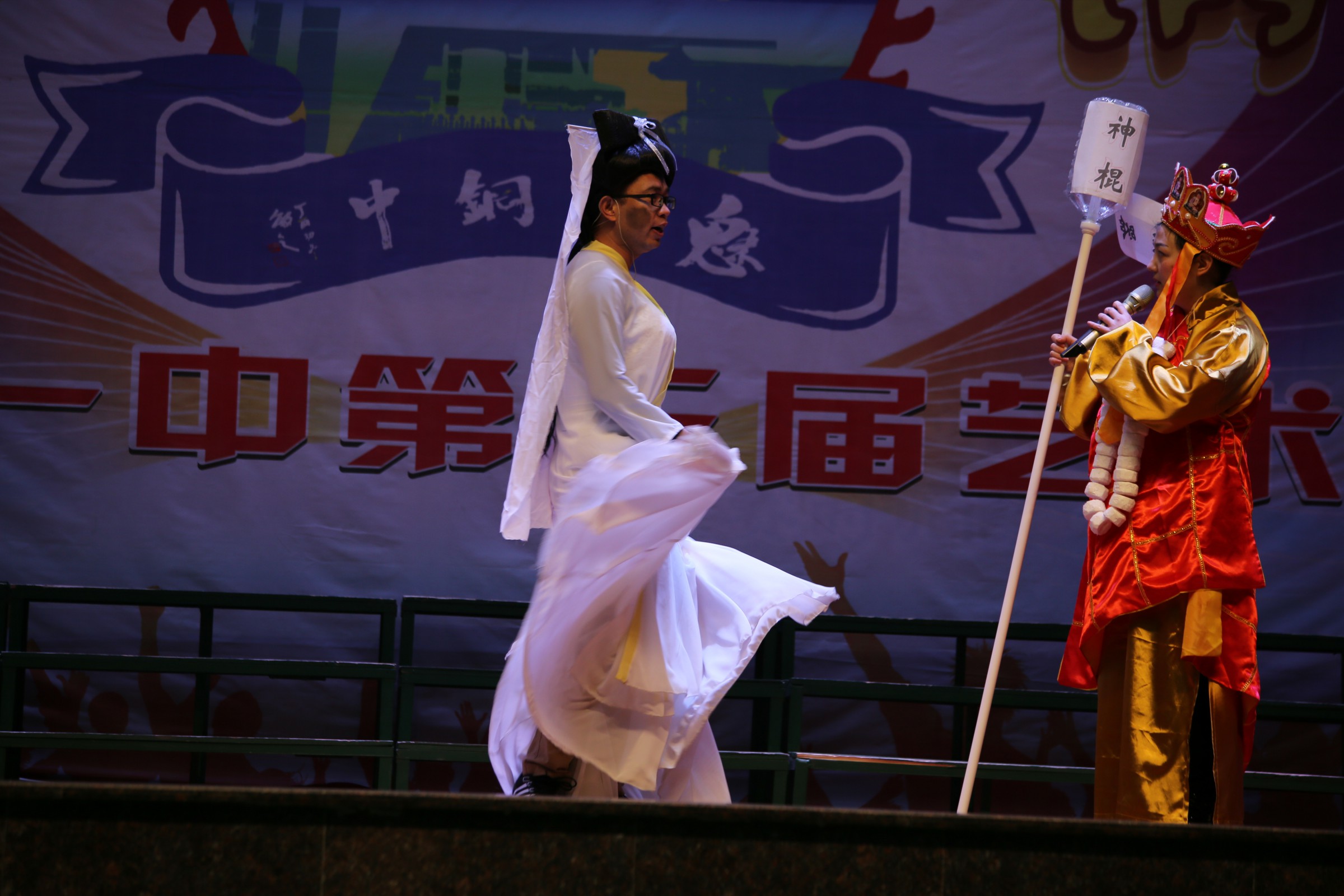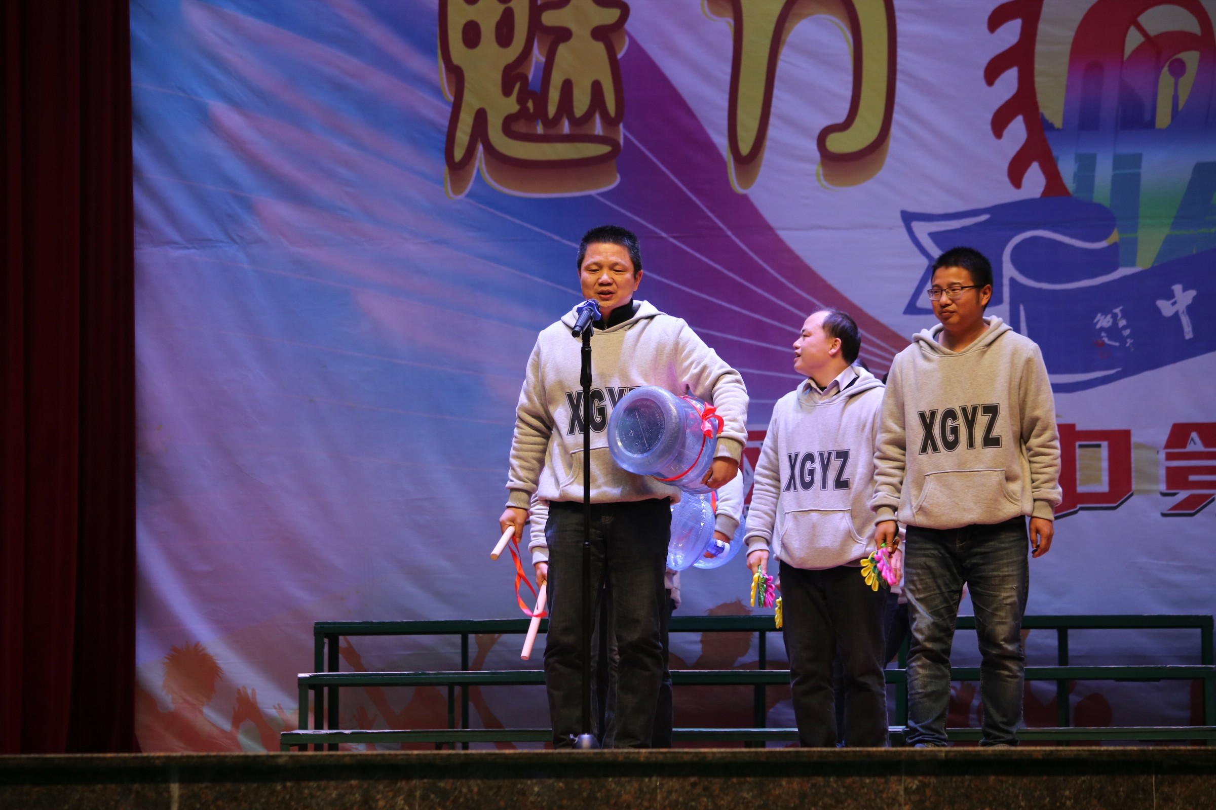 文艺汇演在教务、教科工会组红红火火《恭喜、恭喜》欢乐的劲歌热舞中拉开了帷幕。学生安全艺体工会组动感豪放旷达的的舞蹈《大海航行靠舵手》,初三工会组幽默风趣间赋有浓浓生活写照的小品《如此夫妻》,初二工会组温暖唯美的小提琴伴奏《西风》,高二年级帅气个性的滕超吉他弹唱《再回首》、欢快的锣鼓伴随《新年HIGH》三句半,初一工会组大气恢弘磅礴的舞蹈《中国龙》,高一工会组歌曲《东方之珠》、老中青昂扬联袂歌舞《青春组合》、葫芦丝独奏伴舞《月光下的凤尾竹》,党政办、总务工会组热情奔放的《兔子舞》等朝气蓬勃的表演给在场所有人都留下了精彩的瞬间。高三工会组声情并茂的朗诵《致敬余光中》在美妙的音乐与表演者完美的结合中,为所有人奉献了一场震撼的视听盛宴。而十二中校区综合组老师自毁形象才艺毕现的音乐荒诞剧《人妖情未了》让人叹为观止!退休老师的京剧演唱以及学校外籍教师的尽情奉献更将演出推向了高潮。