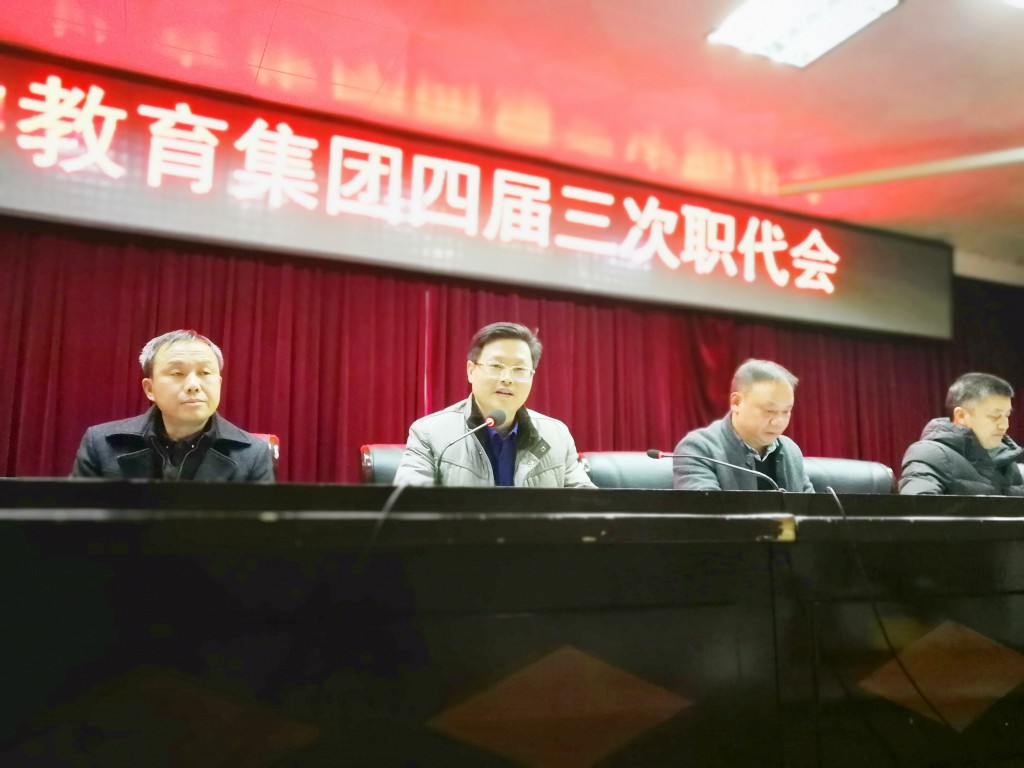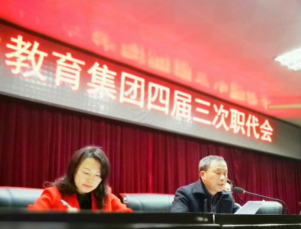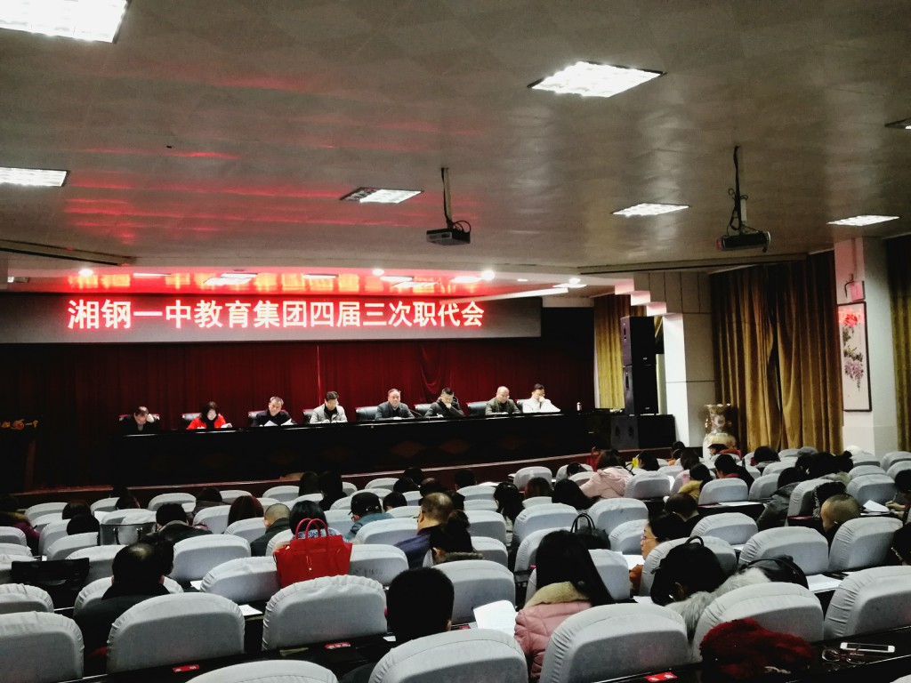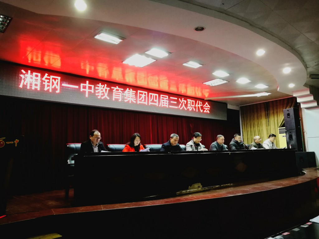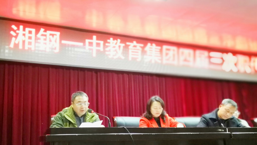 2018年1月15日晚上,湘钢一中教育集团在北楼会议室召开第四届三次教职工代表大会。大会在学校工会及党政办的精心组织下,在各位代表的积极参与下,在庄严的《国歌》和《湘钢一中校歌》声中开幕。集团全体校级领导及教职工代表近百人参加了会议。会议由十二中校区党支部书记廖和平主持。