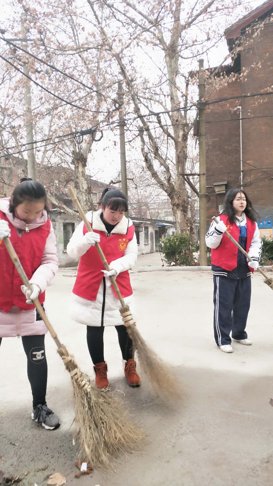 为响应学校号召,弘扬志愿者精神,提升公民的责任意识。我校初三年级1502班分为两个小分队在假期中开展了形式多样的志愿者服务活动。1月30日上午9点,一支小分队的同学们来到纯冲塘社区进行卫生清扫以及流感知识的宣传普及活动。同学们扫的扫,铲的铲,忙得不亦乐乎。在大家共同努力下,很快一条铺满落叶的街道就被他们打扫干净了。同学们感叹:如果这是由一个人来打扫估计一个上午都不够,但是在大家的团结协作下两个小时就整洁一新了,这就是团结的力量。为了让更多群众了解如何预防流感,小分队的同学们还积极地向身边的群众们发放宣传单,向他们普及流感知识,街道上他们忙碌的身影成了一道靓丽的风景线!