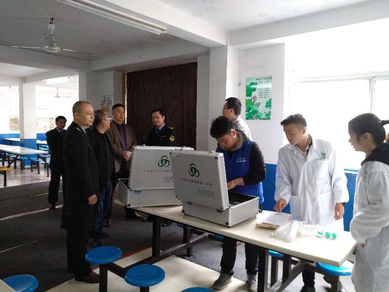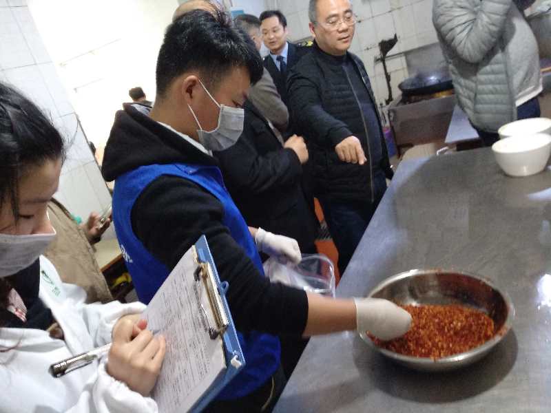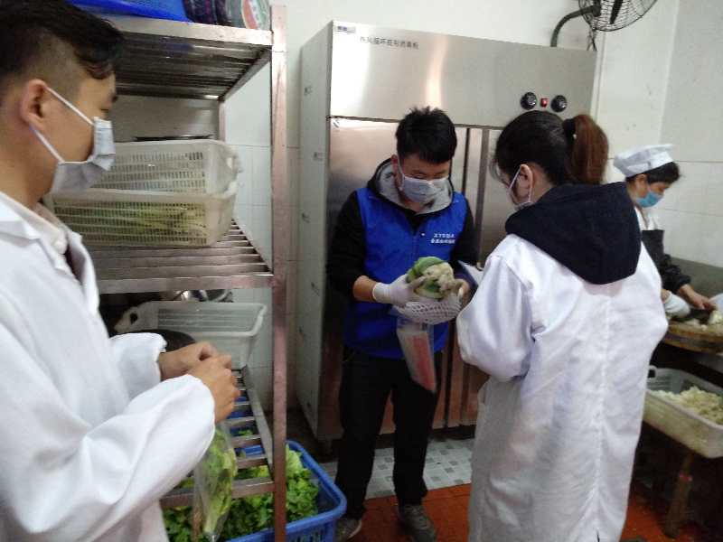 检查组察看了学校食堂管理制度、餐饮服务许可、人员健康管理、餐饮器具清洗消毒、食品留样与登记等情况,并现场对当天食材进行了抽样检测,结果显示,食堂各项食材全部合格。岳塘区食药局领导对学校食堂安全卫生情况给予了高度评价,要求学校继续做好食堂工作,保证广大师生的的饮食安全。
