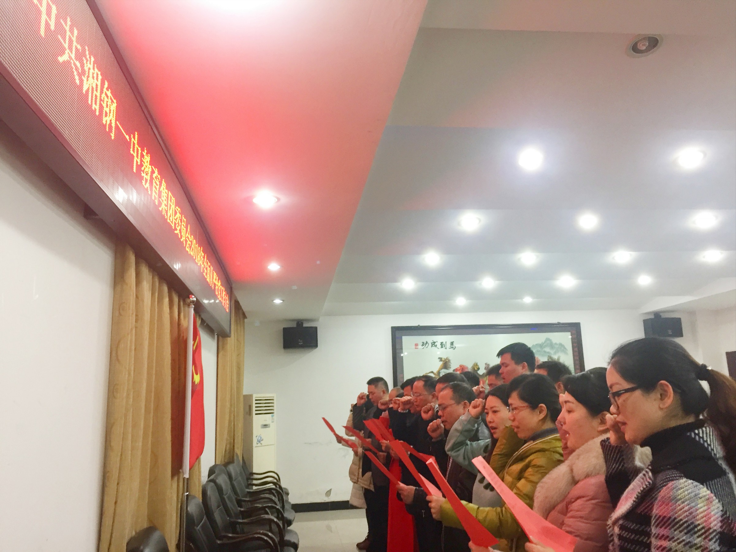 会议最后,全体到会人员在鲜艳的党旗下紧握右拳庄严重温入党誓词。