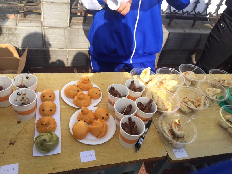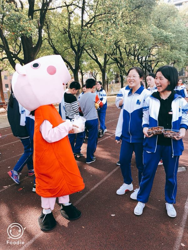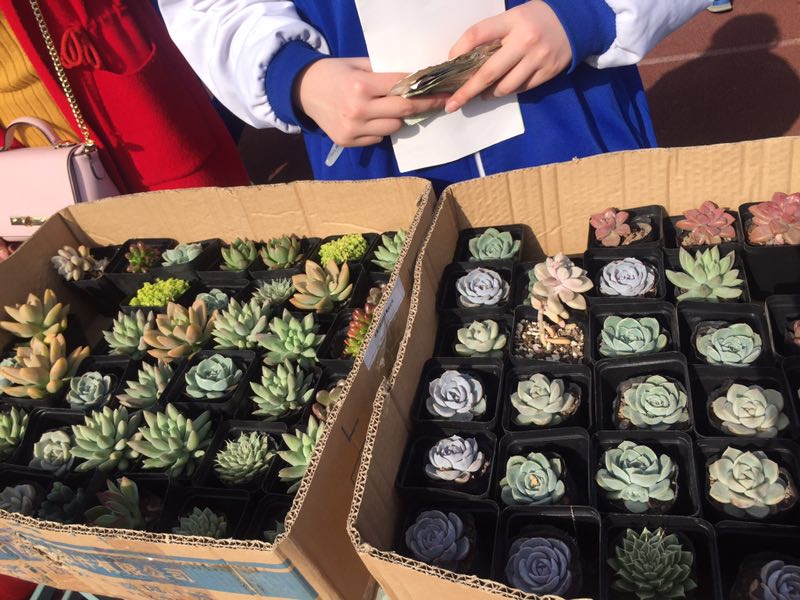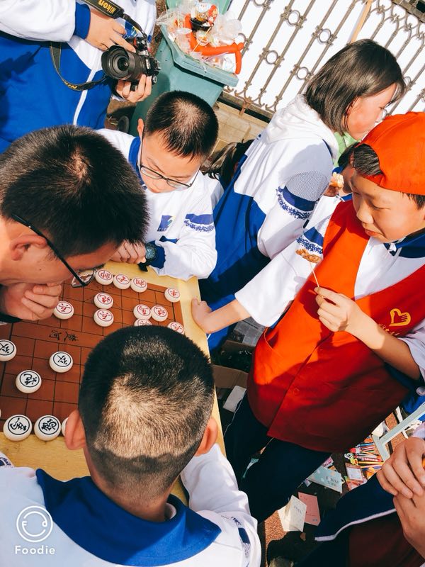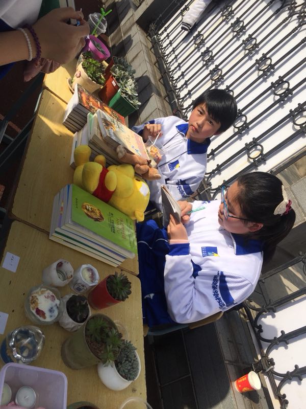 下午3点左右,各班以最快的速度准备就绪,整个操场瞬间成了一个大型集市。市场上各种“惊艳”让人应接不暇。最火爆的当属美食,缤纷果汁、风味酸奶、特色饼干、凉菜小吃、现场烧烤、爆米花棉花糖现场糖人等应有尽有,极尽“诱惑”。这些美食大多是孩子们亲手制作,也有一些家长参与其中热情相助。义卖场上的小商品琳琅满目,盆栽花卉明艳清芬,名著奇书摊前“粉丝”流连。人潮涌动中各种创意惊喜连连,摆套圈游戏地摊者有之,设象棋擂台者有之,吉他弹唱卖艺者有之,字画兜售者有之,还有一群引人注目的“模特儿”,他们扮演各种角色为义卖倾情“促销”。各班“店铺”前的宣传标语也夺人眼球。“卖品有价,爱心无价”、“爱心,在你我手中传递”、“小猪佩奇为爱打Call”。操场上各种吆喝声此起彼伏:“走过路过别错过,爱心奉献倍儿爽”、 “买一送一,好货多多,不买就错”……在各个摊位游走流连的同学乐此不疲地挑选自己喜欢的物品,不少家长、老师也加入了购物大军。