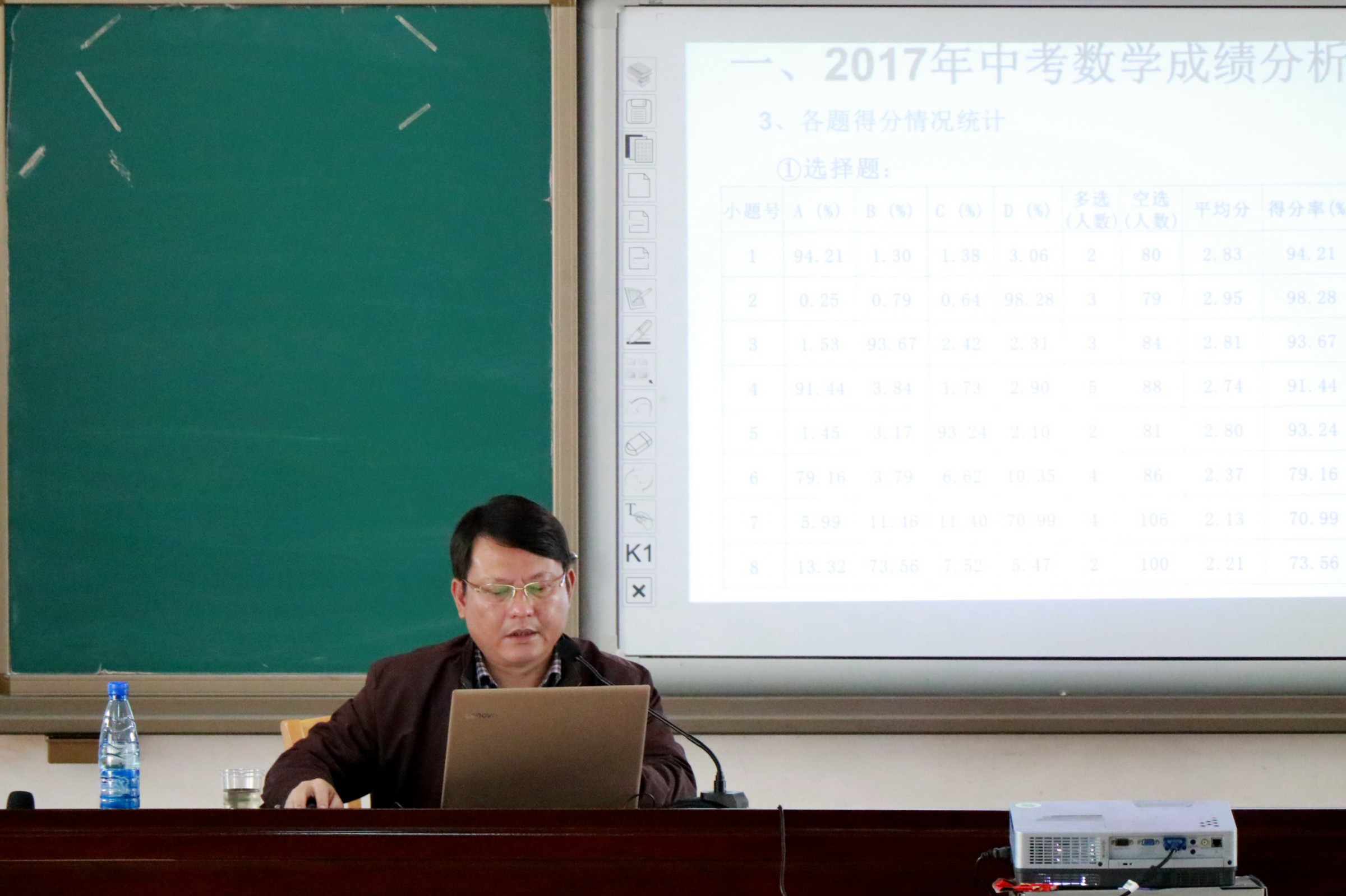 最后由湘潭市教科院中学教研室主任、市中学数学教研员颜望辉老师作总结,他感谢湘钢一中对本次会议的大力支持,对湘钢一中的发展给予了充分肯定,也就2018年中考提出了一些想法和建议。