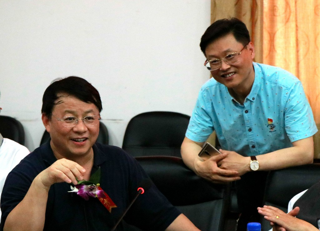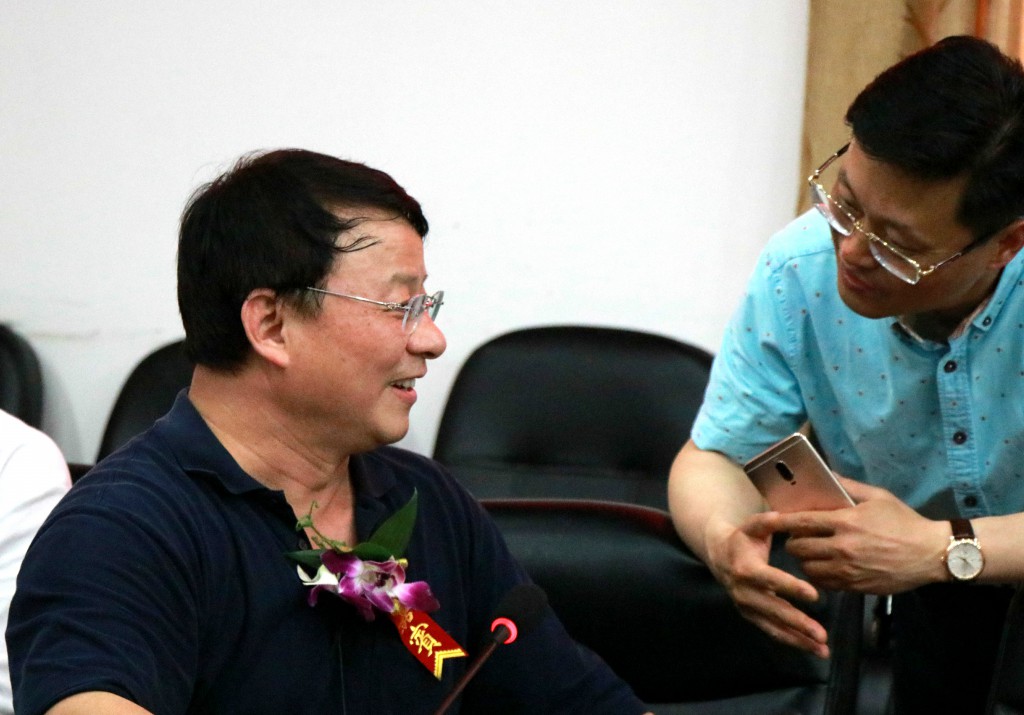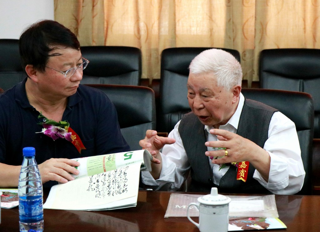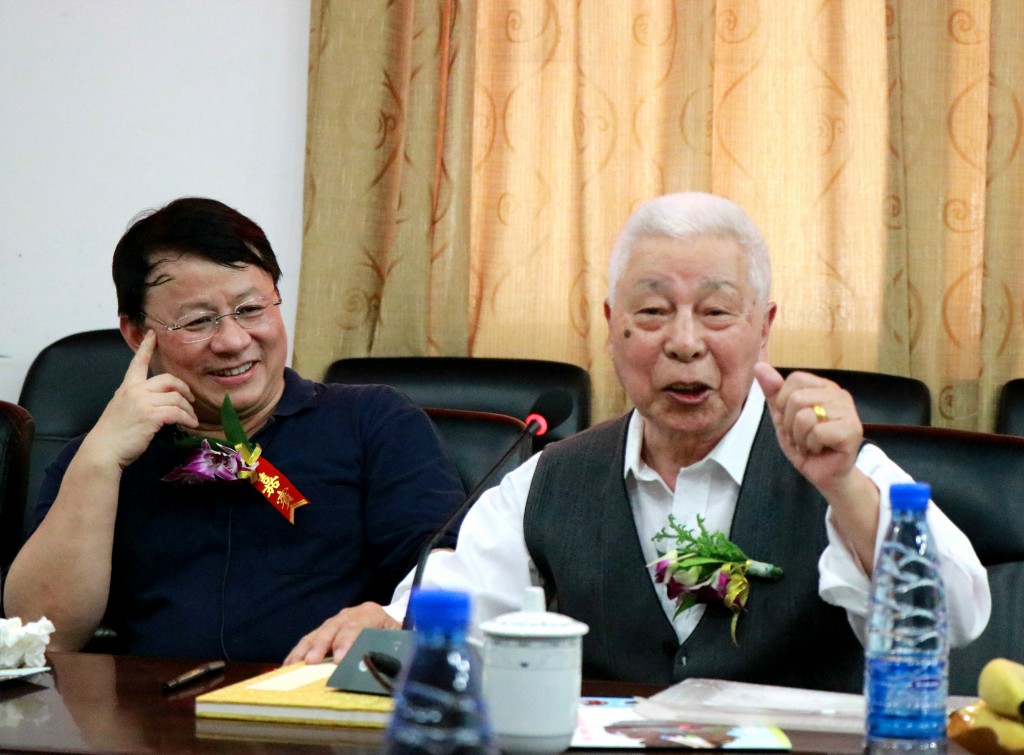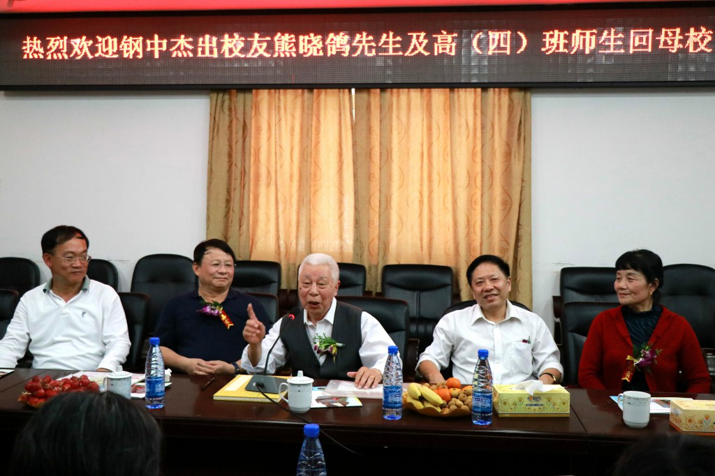 颁奖典礼举行前,熊晓鸽先生早早地来到南楼会议室,与恩师周国良老师、周大慈老师的家属、高(四)班同学、湘钢集团公司领导、学校领导亲切交流。