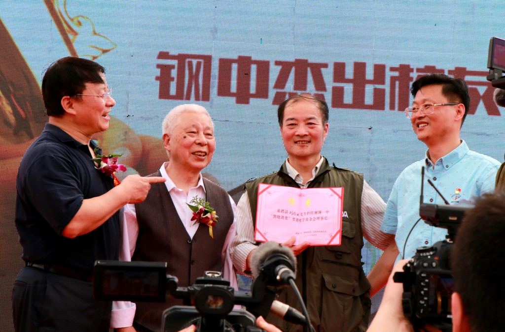 现为美国国际数据集团(简称IDG)资本全球董事长,中国联通独立董事熊晓鸽先生在湘钢一中成立了“熊晓鸽奖”奖教奖学基金会,聘请刘维湘先生担任基金会理事长,熊晓鸽先生亲临活动现场慰问教师,奖掖后学,为9名获奖老师和12名获奖学生颁奖。