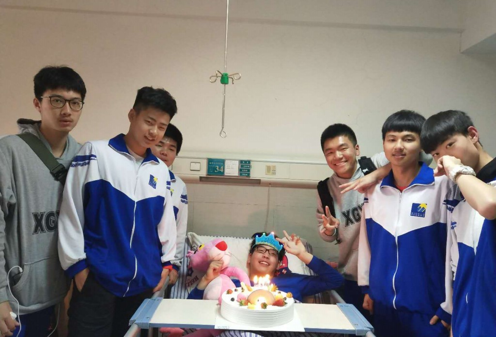 尽管他身体上受伤令同学们感到难过,但他勇于面对困难的决心和毅力却鼓舞了我们。大家送给了他心心念念的零食,陪他聊天,还帮他在薄弱学科上进行了辅导。他躺在床上,但他却过了个温馨难忘的生日。