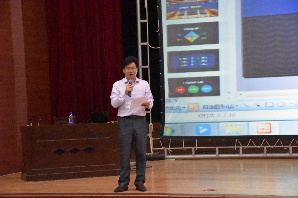 下午由上海建平中学副校长沈正东作《创造适合的教育——新高考背景下学校课程文化建设的实践与探究》主题讲座,活动由湘钢一中教育集团党委书记卢学农主持。讲座中,上海建平中学副校长沈正东解读了上海新高考方案,2017上海高招实施综合素质评价,同时他以建平中学为实例,道出了新高考方案的实施现状与困惑,以及学校课程文化建设的实践与思考。重点介绍了在新高考改革中校本特色课程的建设,特色课程管理等内容。