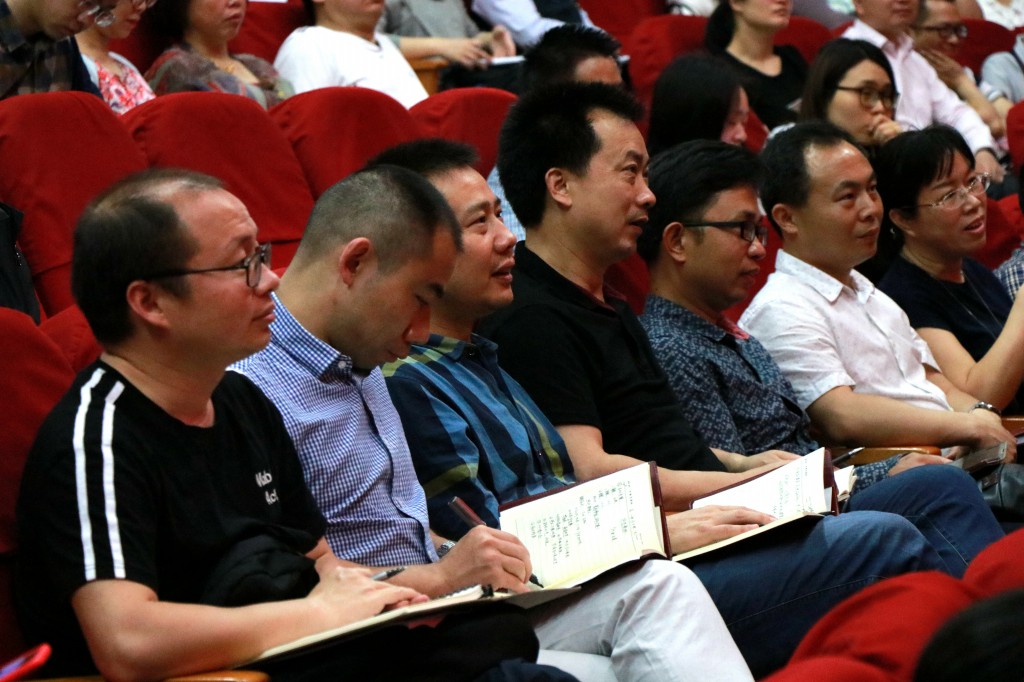 讲座中,冯教授妙语连珠,高瞻远瞩,从国家教育现状出发,让与会的老师们了解到我国的教育过分重视纪律和管制,忽略了自由和权力的价值;过分重视整齐和划一,忽略了个性张扬的价值。他希望与会的老师们能关注“剧场效应”,抓住教育的四个维度,让学生从被动学习转化为能动学习,从个体学习变为协同学习,从表层学习转化为深度学习。希望老师们从教材、学情、时代三个维度,问题、合作、适度三个要素来上好一堂课。