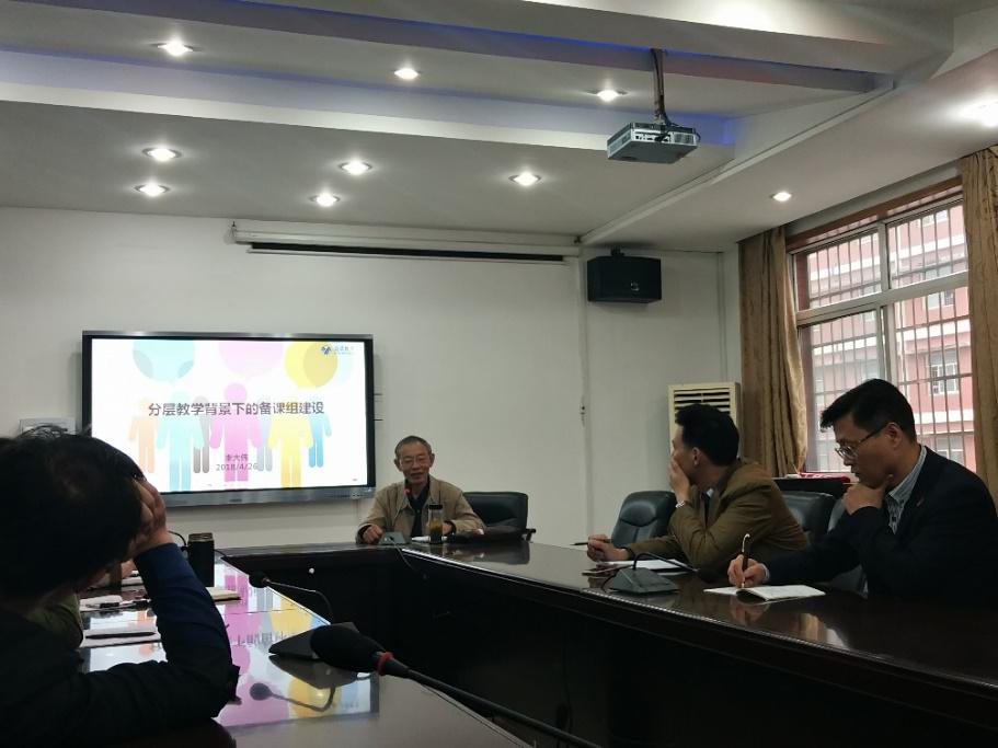 2018年4月26日上午,在湘钢一中宽敞明亮的南楼会议室,上海建平中学的李大伟老师为我校数学老师们带来一场报告——高中数学学科分层教学的合适度控制。