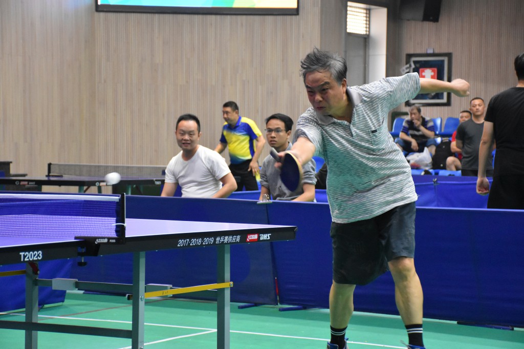 全场最年长的运动员刘西宁老师领衔湘钢一中代表队奋勇驰骋本次赛场。作为原工会主席的“西哥”是全市公认的乒坛“老大”,技术娴熟炉火纯青,直拍、横拍、扣球、旋转球、弧线球可以任意发挥,比赛时他巧妙的回球、犀利的扣球、侧身进攻,后退拉球,所有动作漂亮的都如行云流水一般,赢得场上阵阵掌声和喝彩。特别是他在男子单打决赛时互有攻防、比分跌宕,更让比赛充满了刺激与悬念,让观众倍感兴奋大呼过瘾。作为一名年近60岁的参赛选手,他浑厚的功底和强大的气场不仅赢得了全体观众与运动员的钦佩,更赢得了对手冠军及大赛组委会的敬重。
