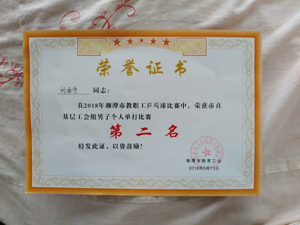湘钢一中所有参赛选手在比赛中团结协作、敢打敢拼,充分展示学校教工朝气蓬勃、积极进取、勇猛顽强的精神风貌,经过一天半激烈的角逐,最终荣获了团体第三名和男子单打亚军的优异成绩;同时,也因安全、周密、热情、优质的服务荣获大赛“优秀组织奖”。