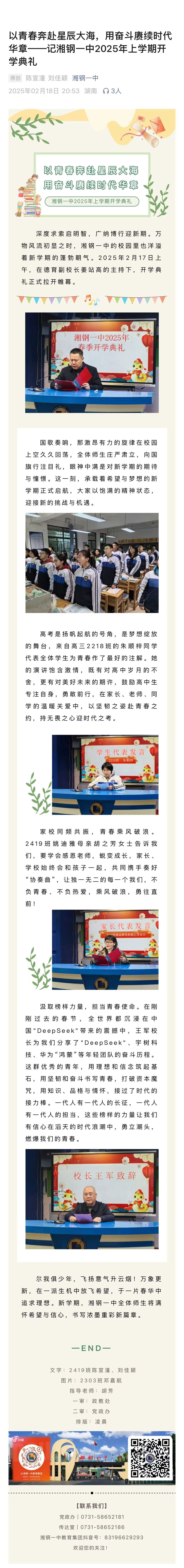 以青春奔赴星辰大海,用奋斗赓续时代华章——记湘钢一中2025年上学期开学典礼