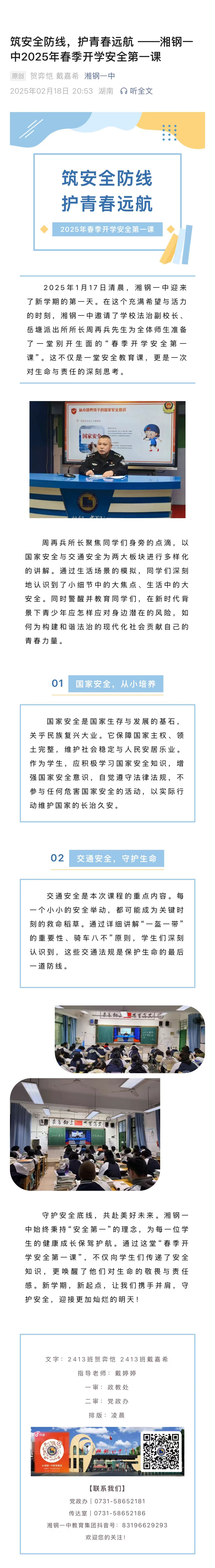 筑安全防线,护青春远航 ——湘钢一中2025年春季开学安全第一课