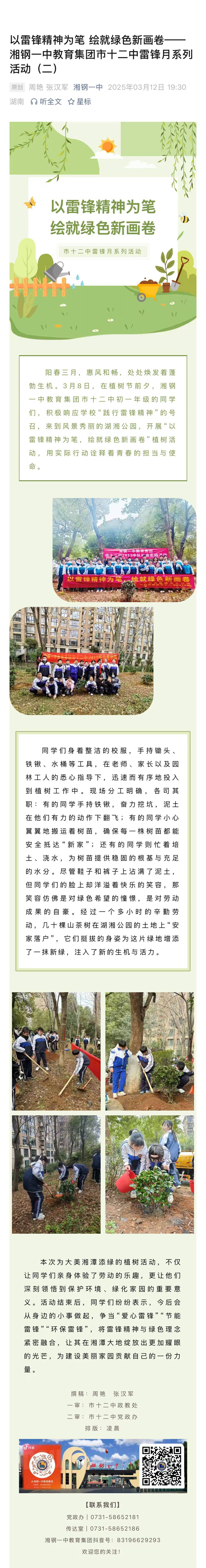 以雷锋精神为笔 绘就绿色新画卷——湘钢一中教育集团市十二中雷锋月系列活动(二)