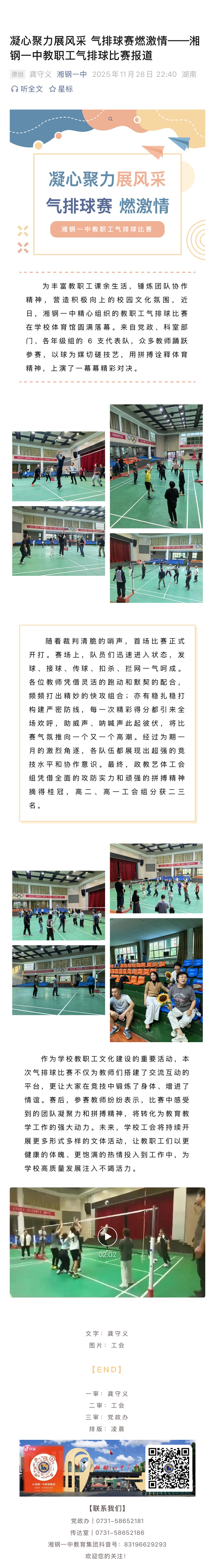 凝心聚力展风采 气排球赛燃激情——湘钢一中教职工气排球比赛报道