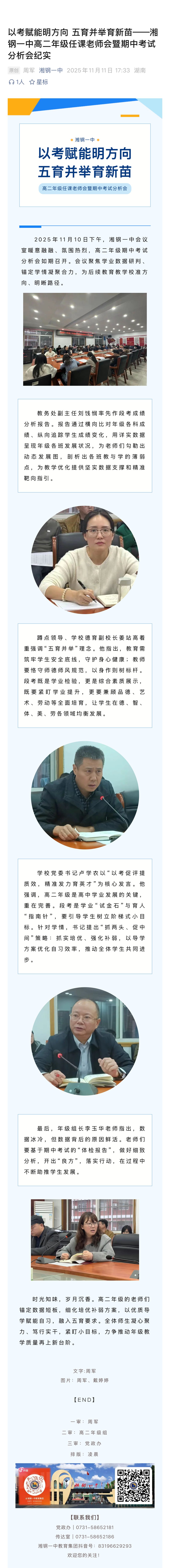 以考赋能明方向 五育并举育新苗——湘钢一中高二年级任课老师会暨期中考试分析会纪实
