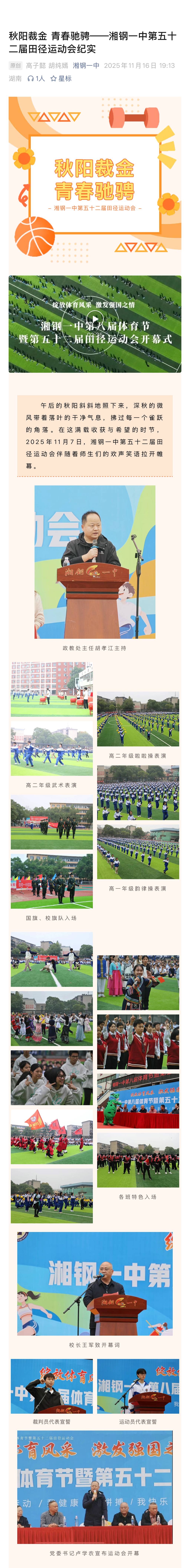 秋阳裁金 青春驰骋——湘钢一中第五十二届田径运动会纪实