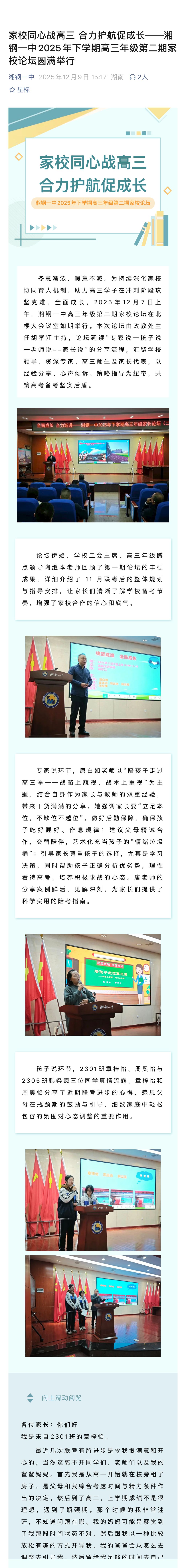 家校同心战高三 合力护航促成长——湘钢一中2025年下学期高三年级第二期家校论坛圆满举行