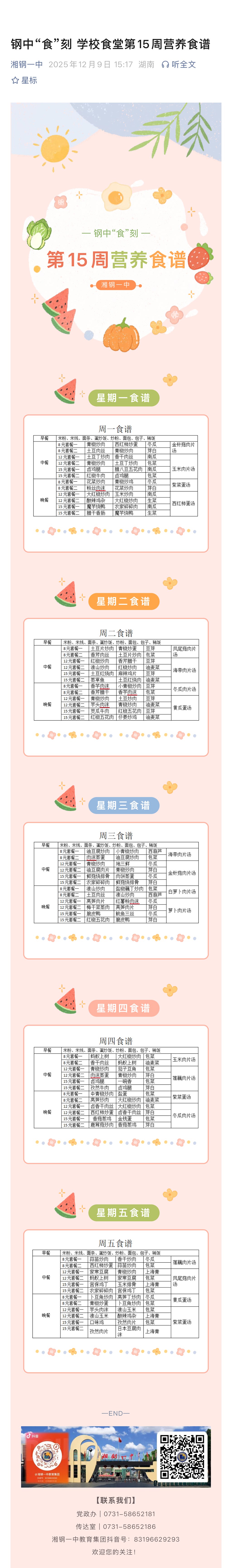 钢中“食”刻 学校食堂第15周营养食谱