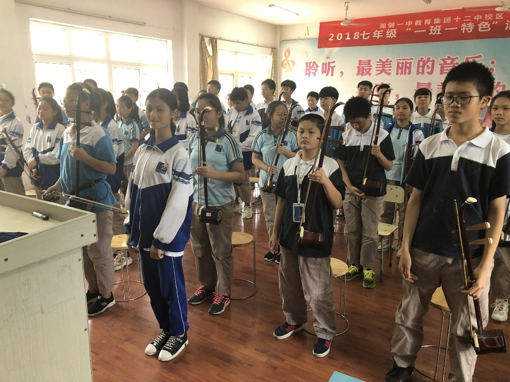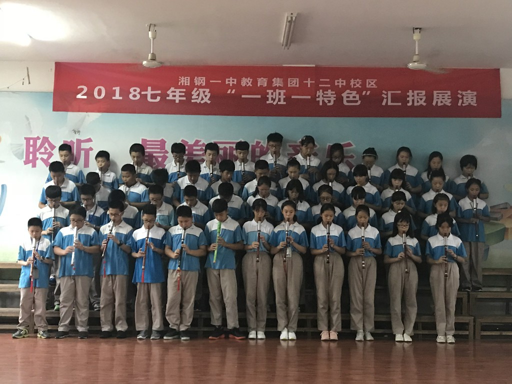 “一班一特色”是我校为深入推进新课程改革,促进每一位学生全面发展而设立的特色课,包括二胡、竹笛、葫芦丝、巴乌等。为丰富校园艺术生活,提高学生的艺术表现力和创造力,6月22日学校特举办第二届“一班一特色”汇报展演。通过此次活动,营造和谐向上、健康文明的校园文化氛围和艺术教育环境,促进学校艺术教育活动的普及和提高。