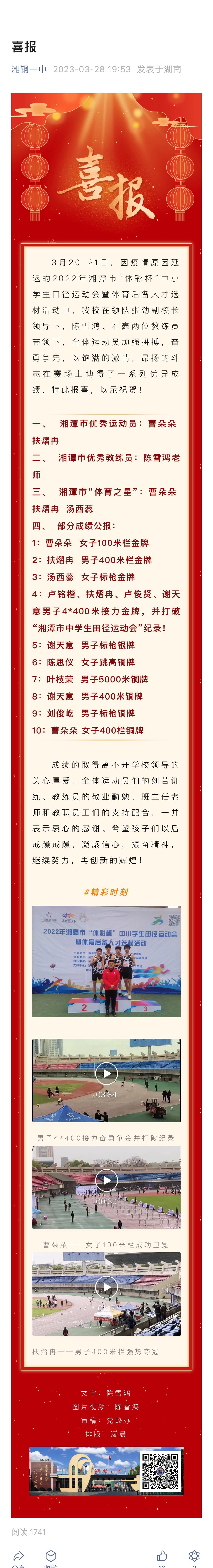 喜报:2022年湘潭市“体彩杯”中小学生田径运动会暨体育后备人才选材活动