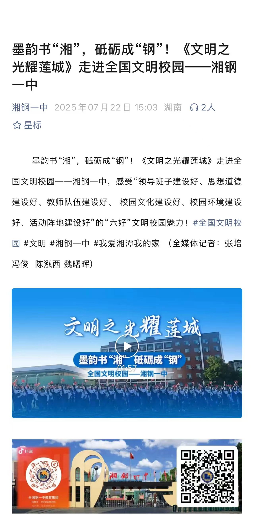 墨韵书“湘”,砥砺成“钢”!《文明之光耀莲城》走进全国文明校园——湘钢一中