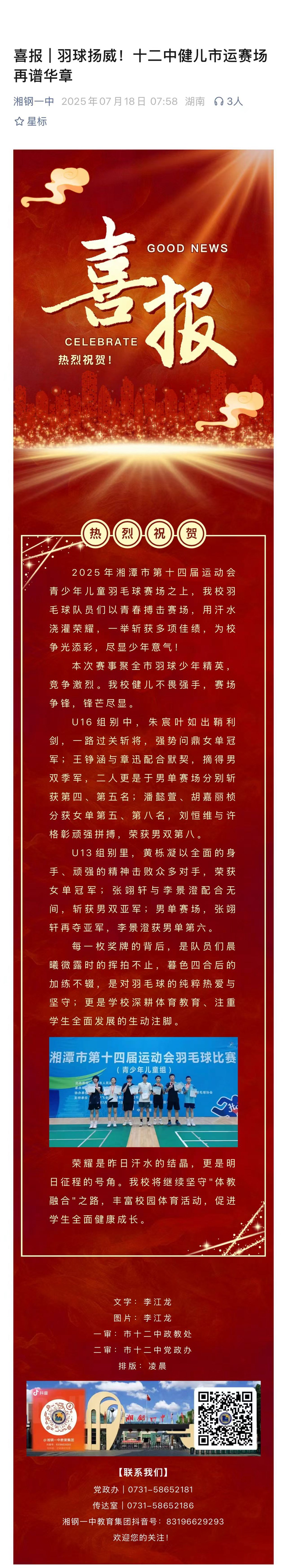 喜报:羽球扬威!十二中健儿市运赛场再谱华章