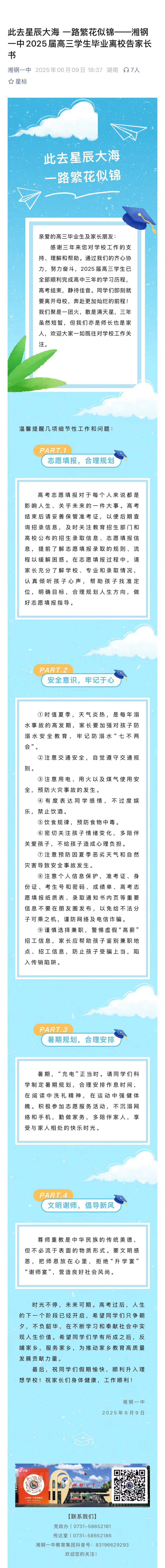 此去星辰大海 一路繁花似锦——湘钢一中2025届高三学生毕业离校告家长书
