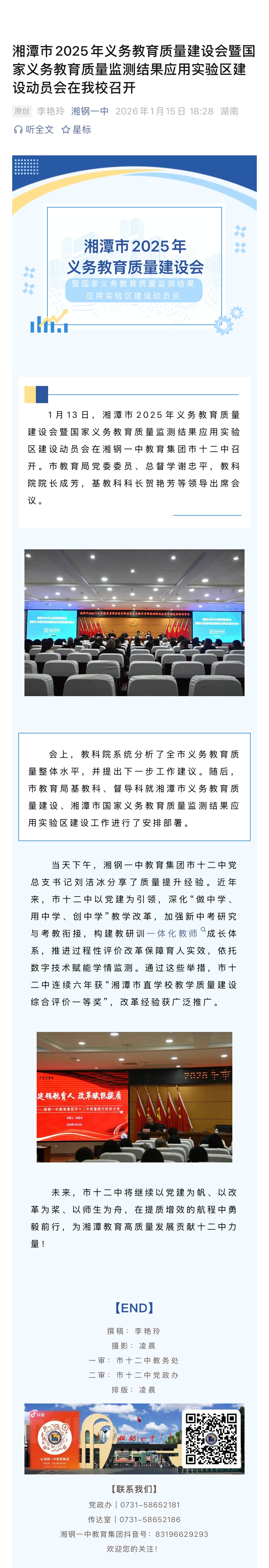 湘潭市2025年义务教育质量建设会暨国家义务教育质量监测结果应用实验区建设动员会在我校召开