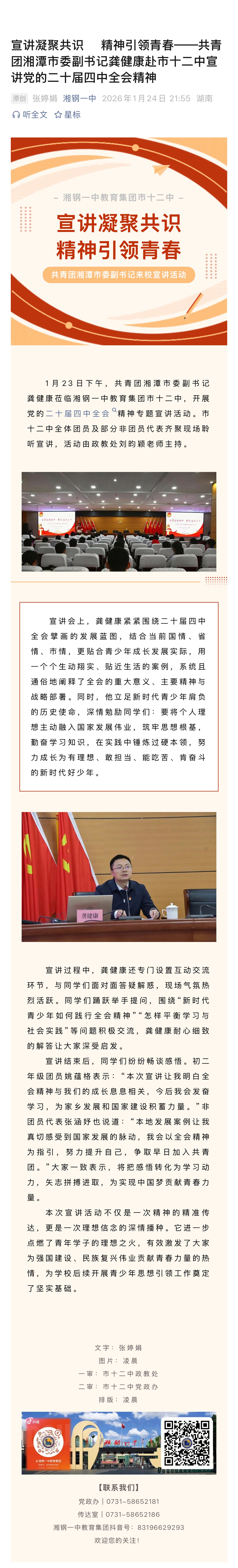 宣讲凝聚共识 精神引领青春——共青团湘潭市委副书记龚健康赴市十二中宣讲党的二十届四中全会精神