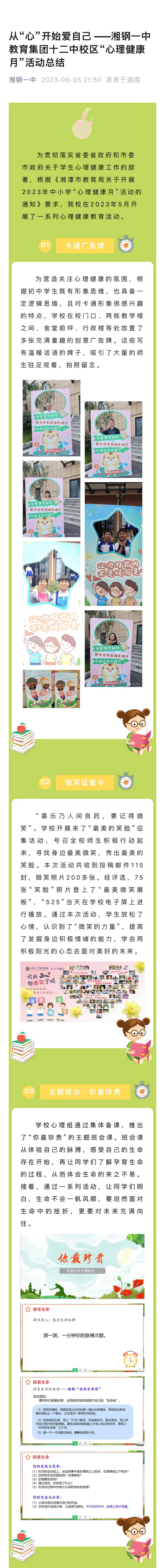 从“心”开始爱自己 ——湘钢一中教育集团十二中校区“心理健康月”活动总结